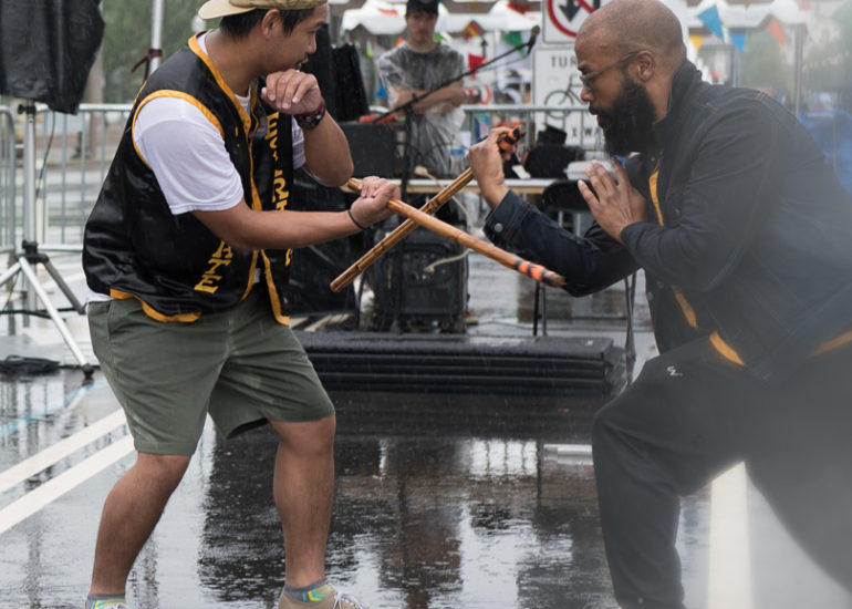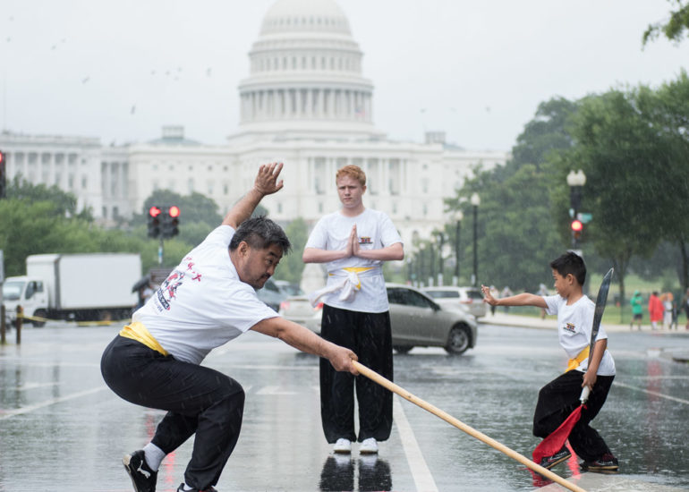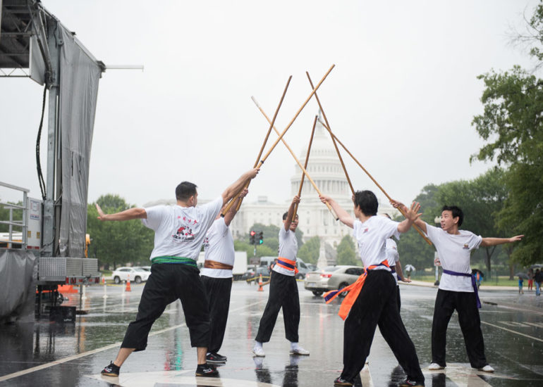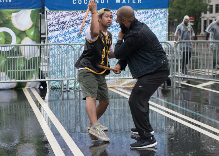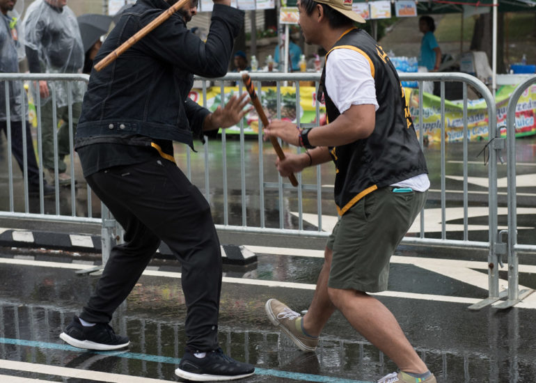 Despite the rain, martial arts groups appeared for their demonstrations. Performers include Wu Shen Tao (Tai Chi), Ultimate Eskrima, Shaolin Temple USA, and
